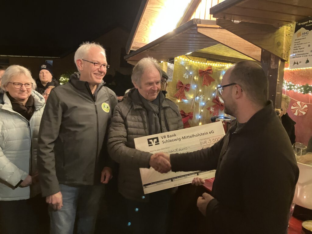 über 105.000€uro Spenden gesammeltMit einem Scheck in Höhe von 3.000 Euro überraschte der HHG Vorsitzende Axel Bendixen den Schatzmeister Bernd Kruse und den Vorsitzenden Carsten